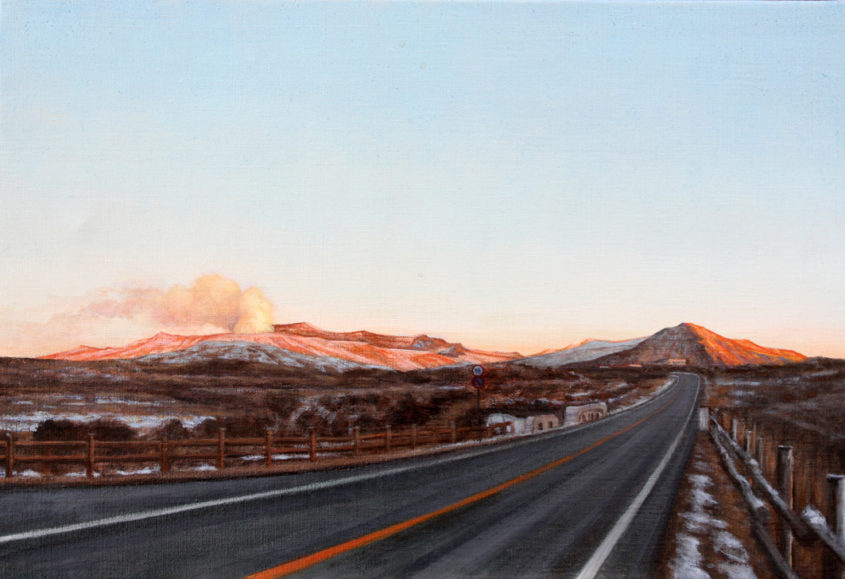 表紙の絵は熊本の阿蘇です。初冬の夕日です。