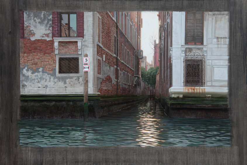 それを私なりに表現したのがこの絵です。これは冬の斜陽がベニスの狭い運河に映った